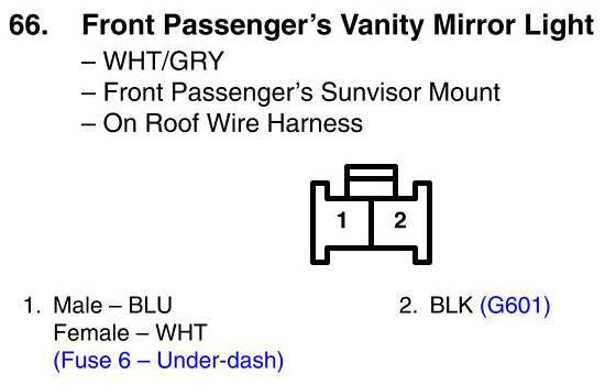 View 66 - Front Passenger's Vanity Mirror Light Connector View
