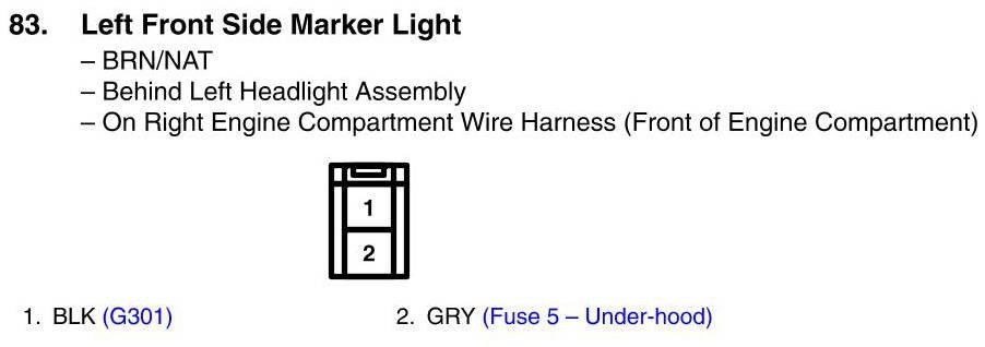 View 83 - Left Front Side Marker Light Connector View