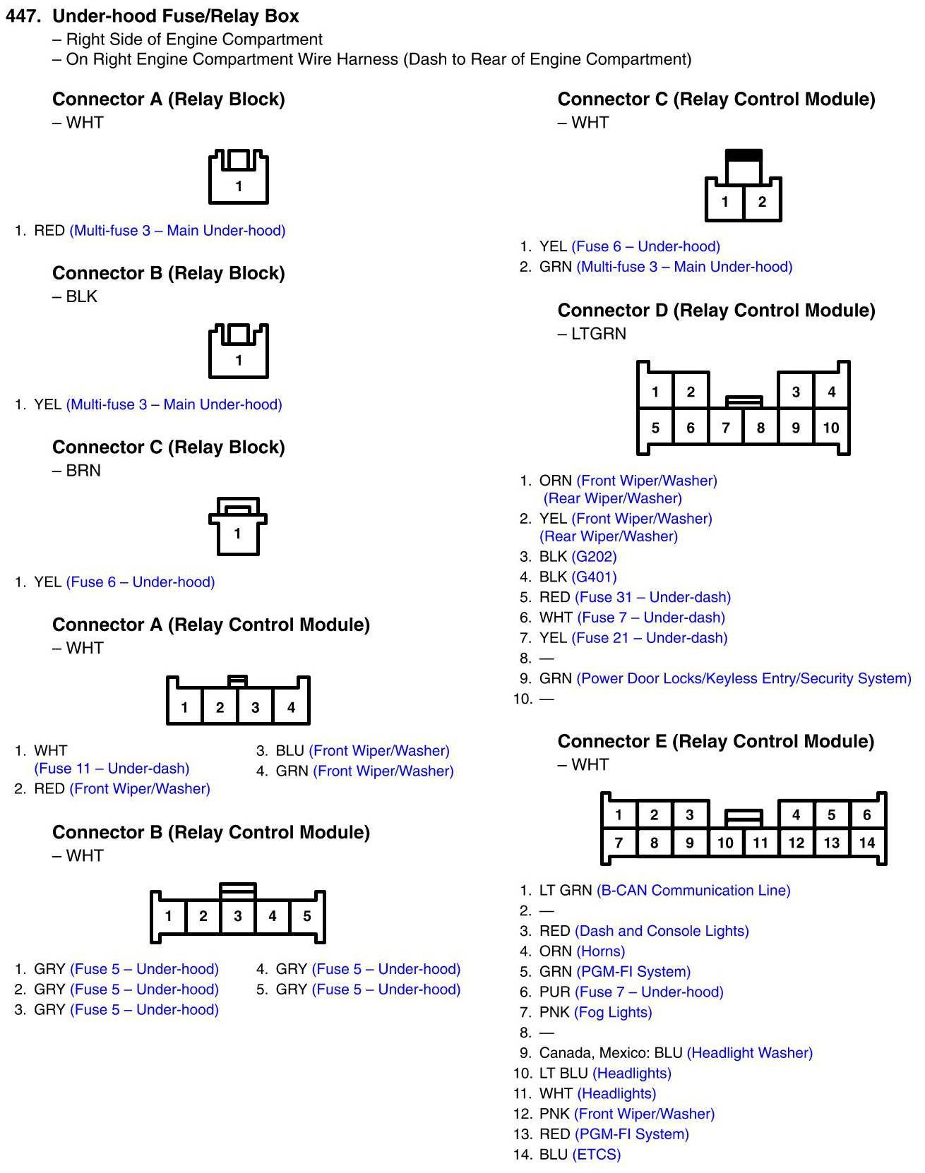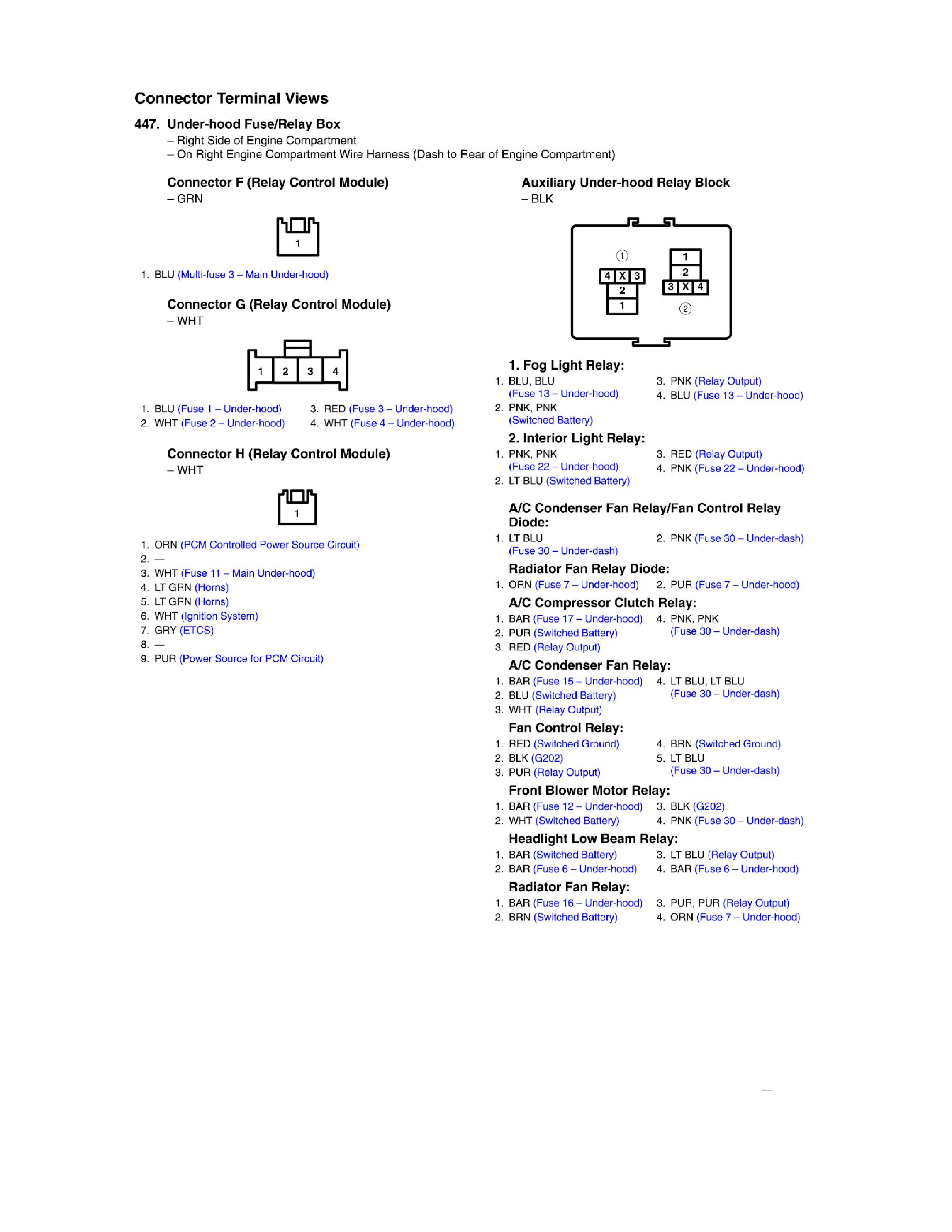 Under-hood Fuse/Relay Box Connector View