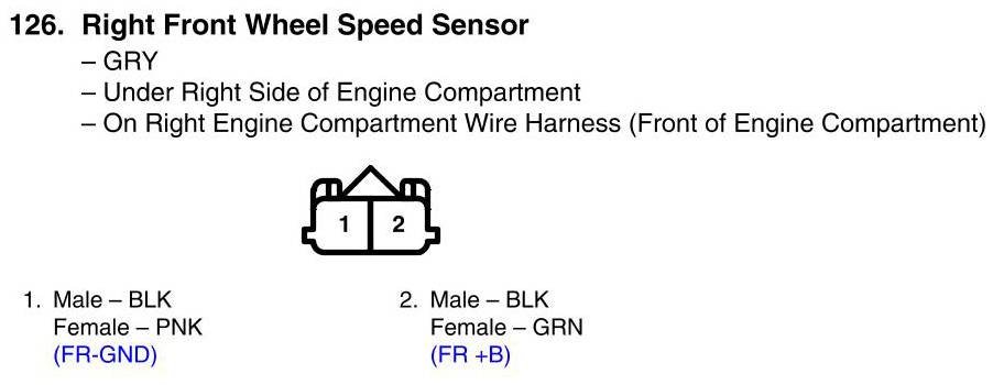 Right Front Wheel Speed Sensor Connector View