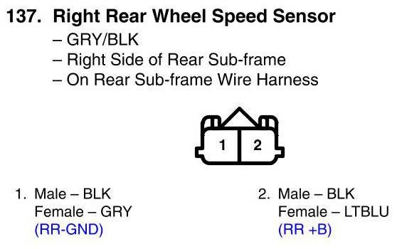 Right Rear Wheel Speed Sensor Connector View