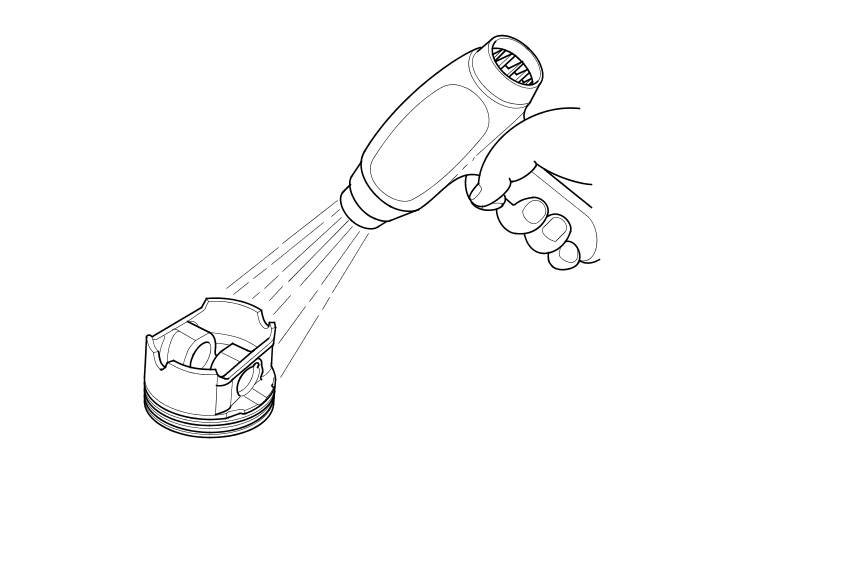 2. Coat the piston pin bore in the piston, the bore in the connecting rod, and the piston pin with new engine oil.