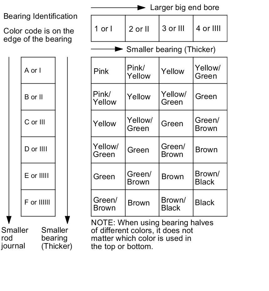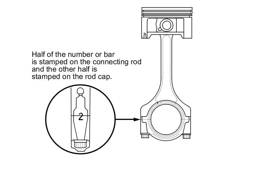 Numbers or bars have been stamped on the side of each connecting rod as a code for the size of the big end. Use them, and the letters or bars stamped on the crank (codes for rod journal size) to choose the correct bearings. If the codes are indecipherable because of an accumulation of dirt and dust, do not scrub them with a wire brush or scraper. Clean them only with solvent or detergent.