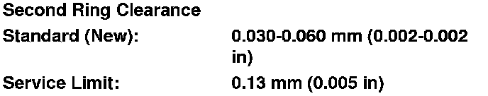 7. After installing a new set of rings, measure the ring-to-groove clearance.