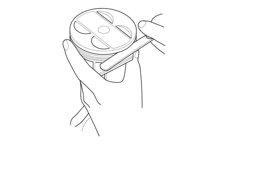 3. Clean all the ring grooves thoroughly with a squared-off broken ring, or a ring groove cleaner with a blade to fit the piston grooves. File down the blade, if necessary. The top ring and second ring grooves are 1.2 mm (0.05 in) wide, and the oil ring groove is 2.8 mm (0.11 in) wide. Do not use a wire brush to clean the ring grooves, or cut the ring grooves deeper with the cleaning tool.