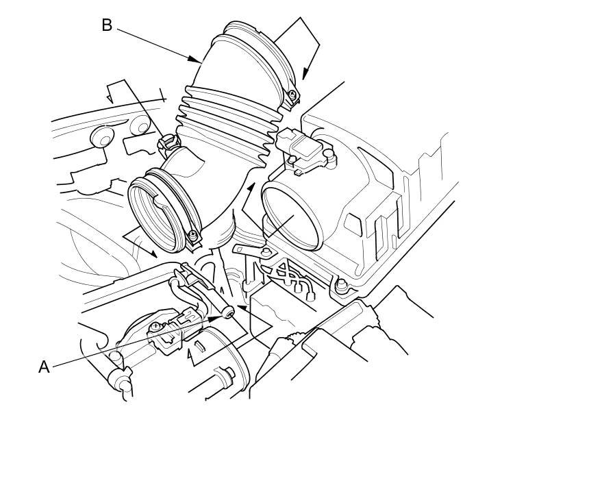 3. Remove the intake air duct (B).