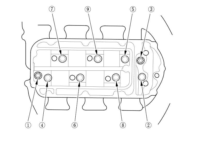 8. Remove the intake manifold mounting bolts and nuts sequentially in three steps.