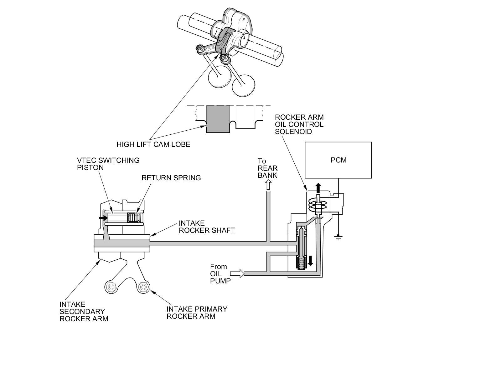 - The VTEC system oil pressure is switched by the rocker arm oil control valve changing the hydraulic circuit. The rocker arm oil control valve is controlled by the rocker arm oil control solenoid. The rocker arm oil pressure switch detects VTEC system oil pressure and sends this information to the PCM.