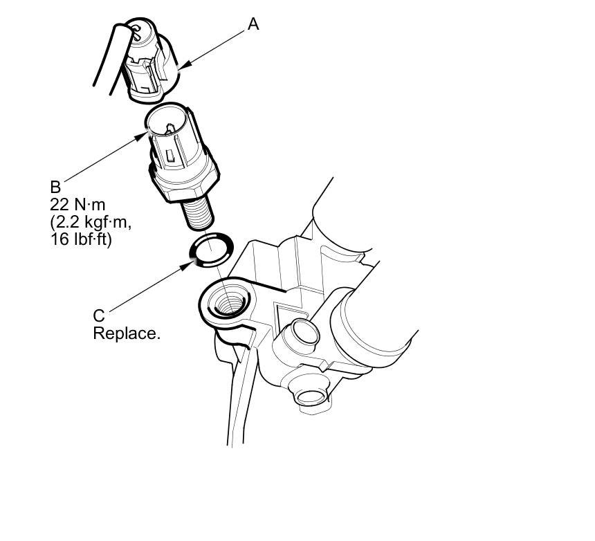 2. Install the parts in the reverse order of removal with a new O-ring (C).