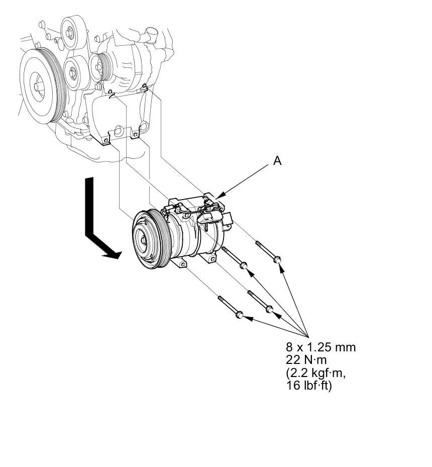 9. Install the A/C compressor in the reverse order of removal, and note these items: