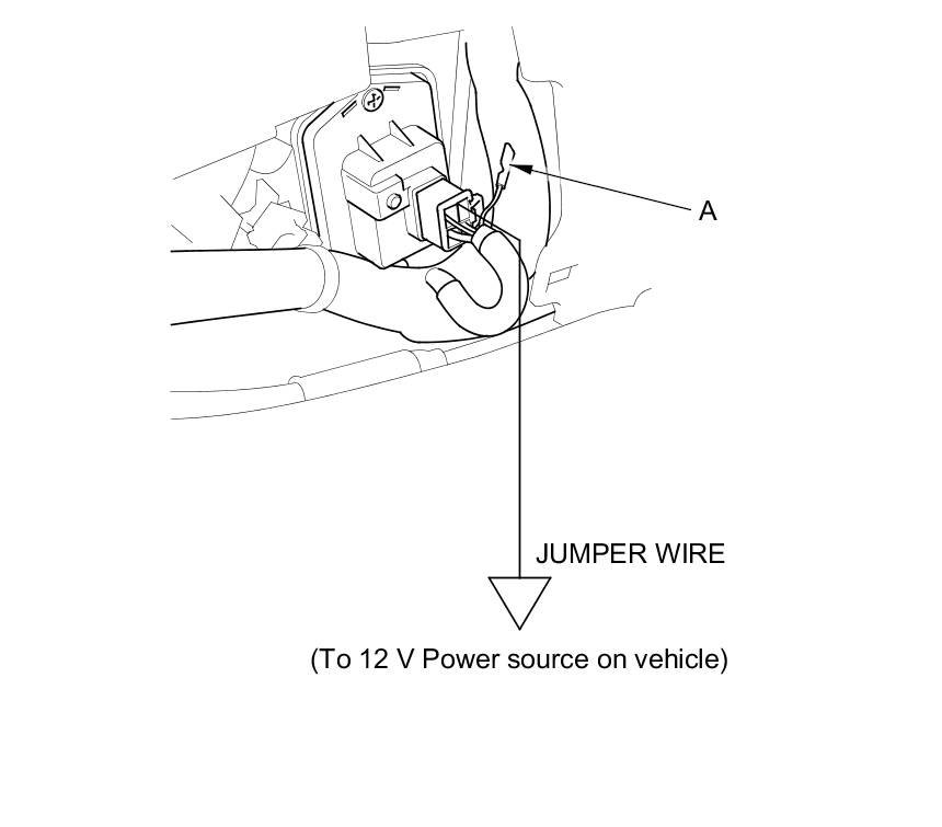 7. Make sure the BLU wire is completely isolated, then supply 12 V to the No. 1 cavity with a jumper wire.
