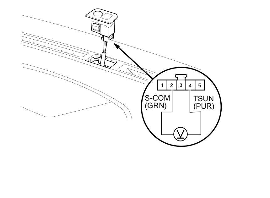 3. Turn the ignition switch to ON (II). Measure the voltage between terminals with the (+) probe on terminal No. 4 and the (-) probe on terminal No. 2 with the connector connected.