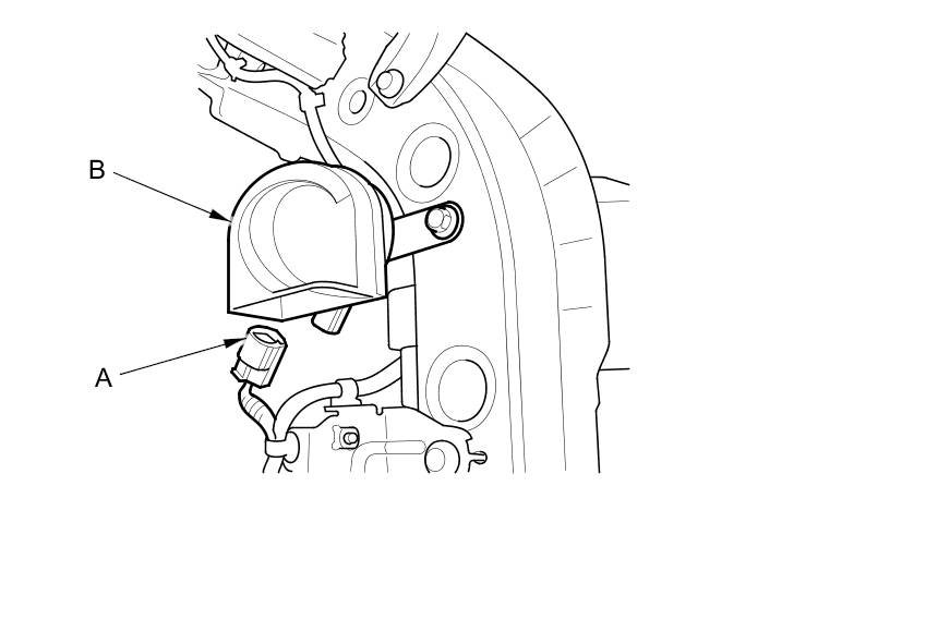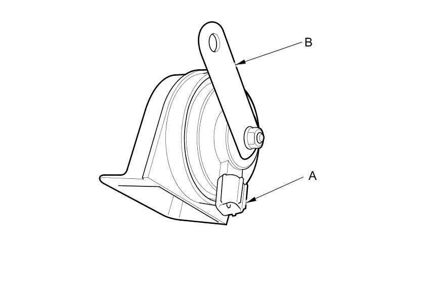 horn by connecting battery power to the terminal (A) and body ground to the bracket (B). The horn should sound.