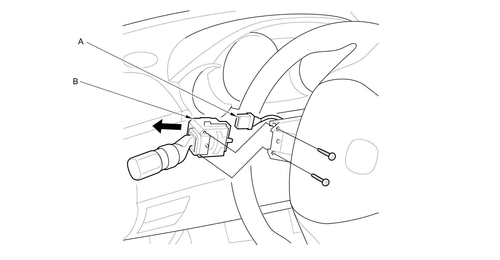 3. Disconnect the combination light switch 10P connector (A) from the combination light switch (B).