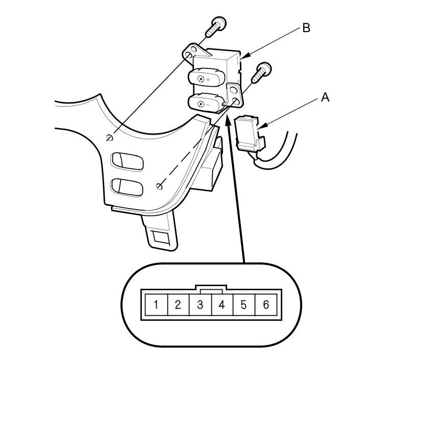 2. Disconnect the 6P connector (A) from the dashlights brightness controller (B).