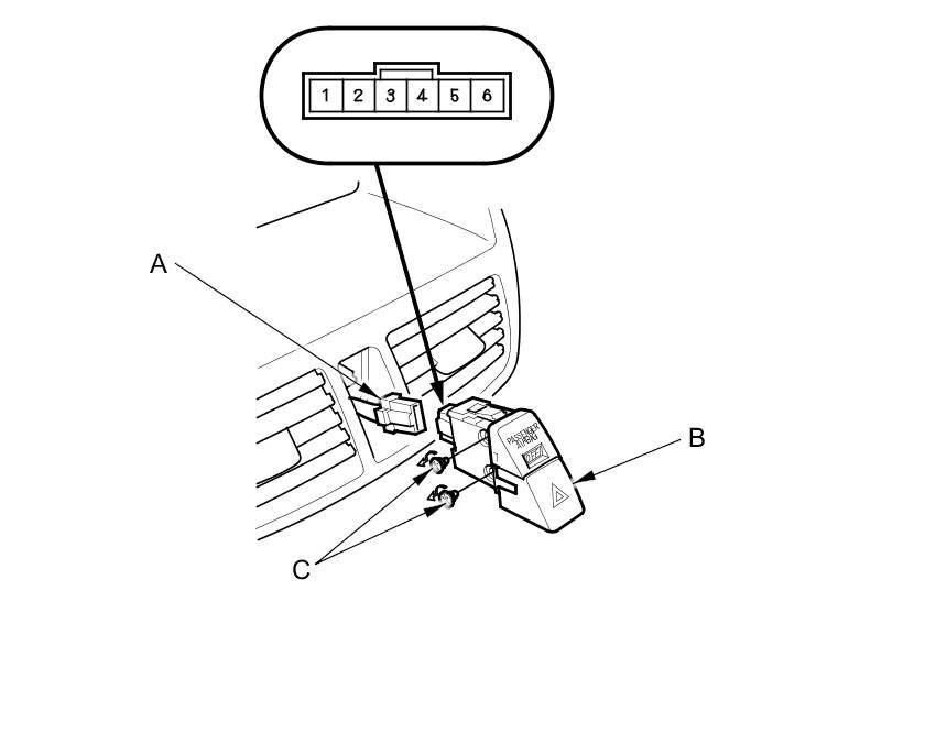 5. If the continuity is not as specified, replace the bulbs (C) or the hazard warning switch.