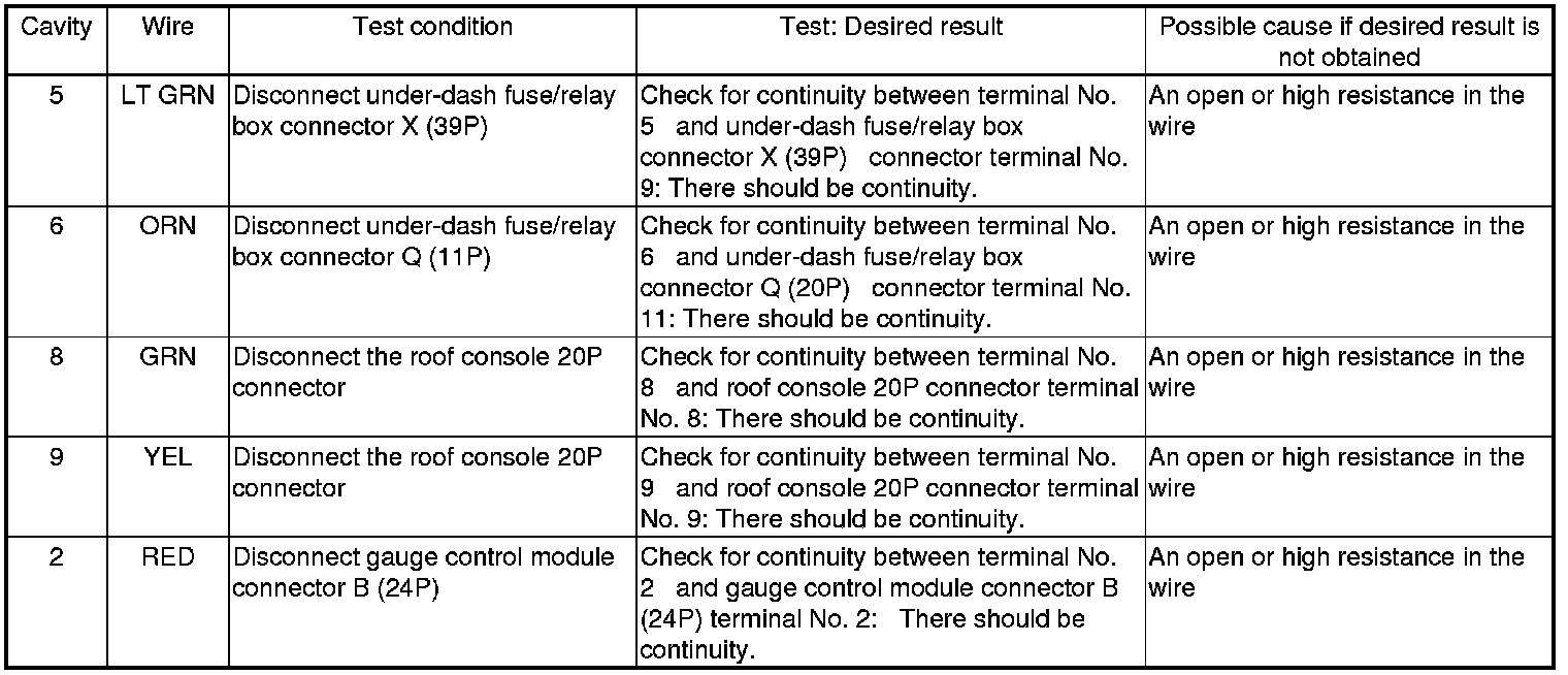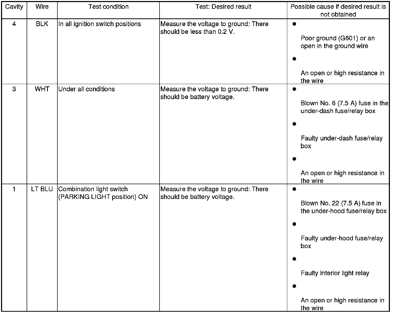6. Reconnect the connector to the rear individual map light, and do the following input tests: