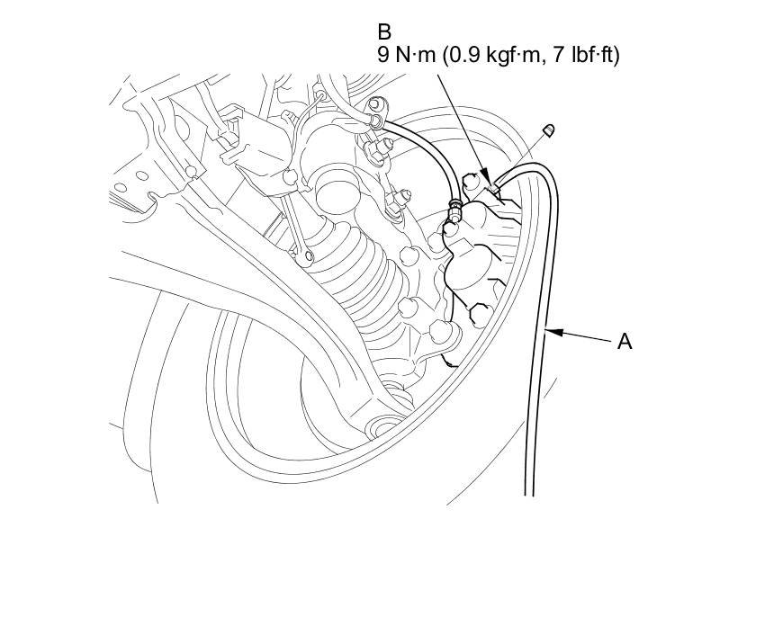 4. Attach a length of clear drain tube (A) to the bleed screw (B), then loosen the bleed screw to allow air to escape from the system. Then tighten the bleed screw securely.