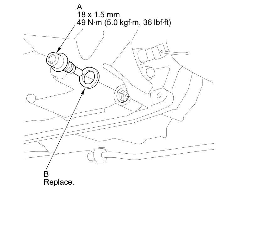 4. Reinstall the drain plug with a new sealing washer (B).