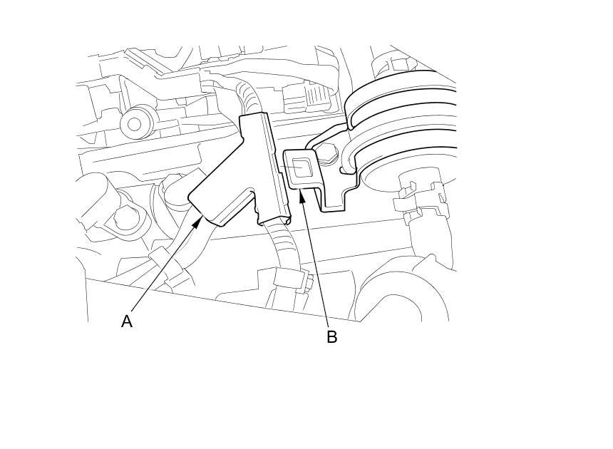 5. Remove the harness cover (A) from the ATF filter holder (B).