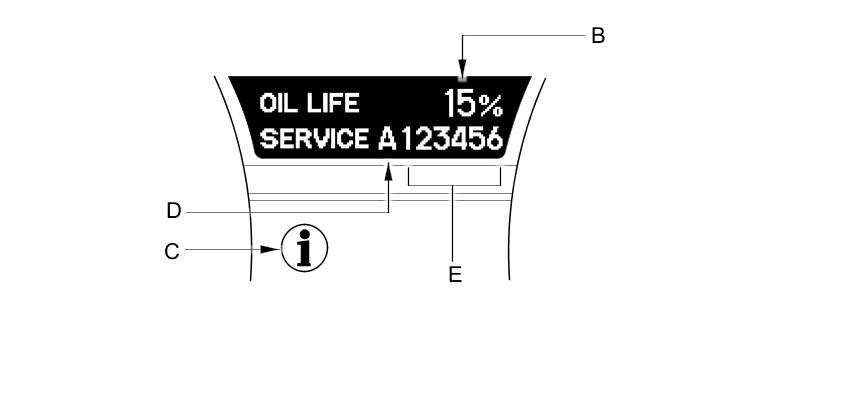 4. When the ignition switch is in ON (II), and the remaining engine oil life is 0 %, the Maintenance Minder message "SERVICE PAST DUE" is displayed along with the same maintenance item code(s).