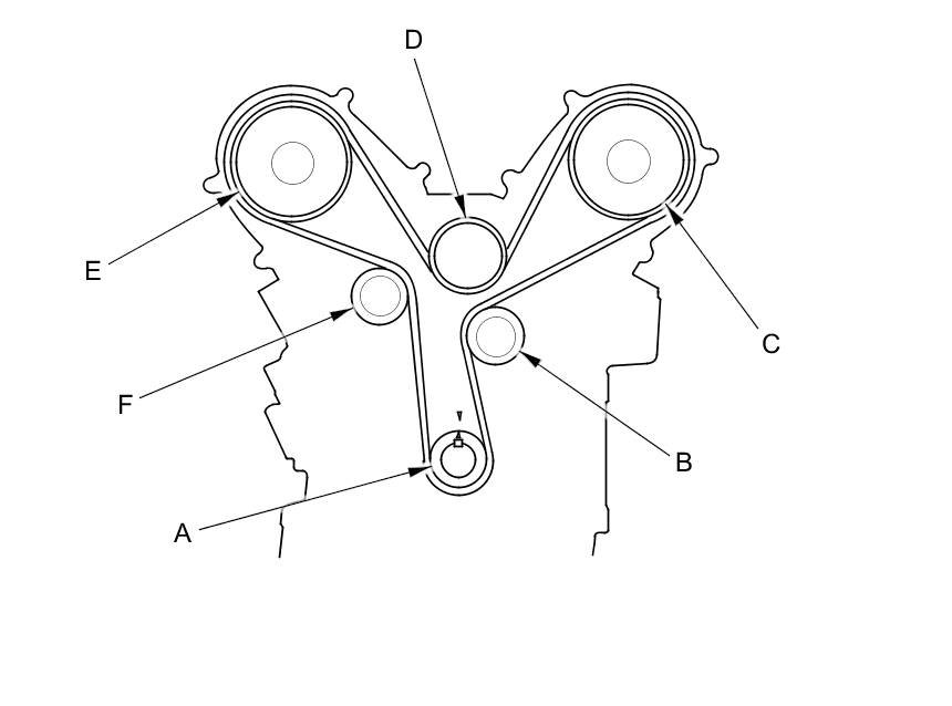 NOTE: The following procedure is for installation of a used timing belt. If you are installing a new belt, refer to the timing belt replacement procedure Timing Belt Replacement.