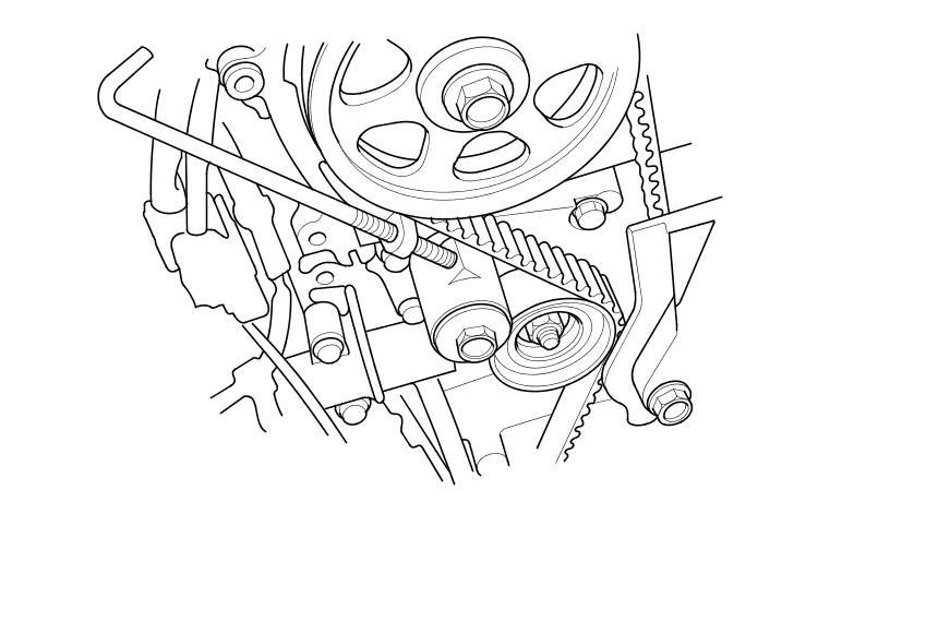 5. If the auto-tensioner has extended and the timing belt cannot be installed, do the timing belt replacement procedure Timing Belt Replacement.