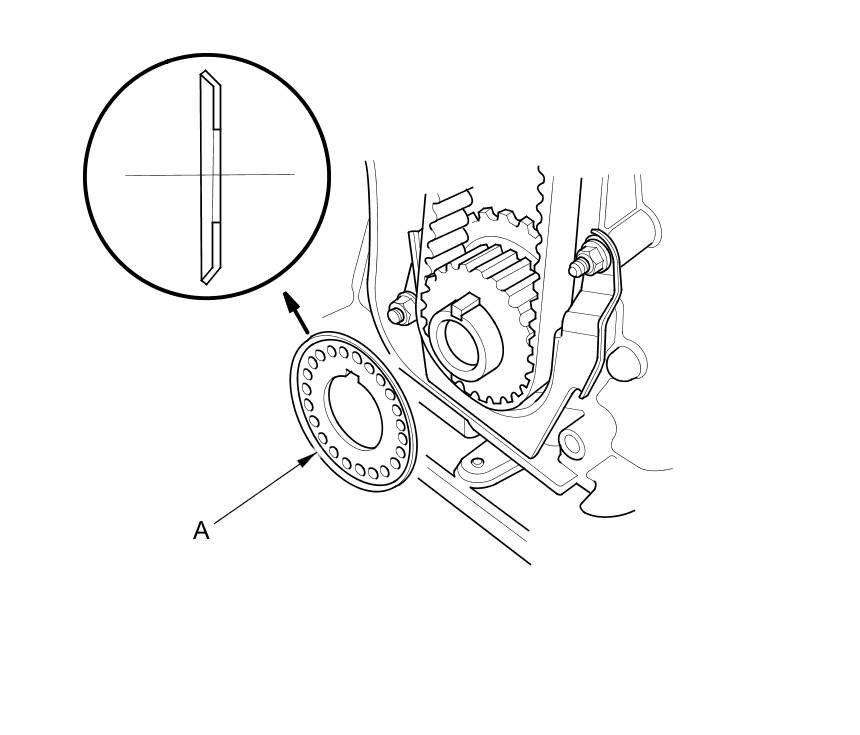 10. Install the timing belt guide plate (A) as shown.