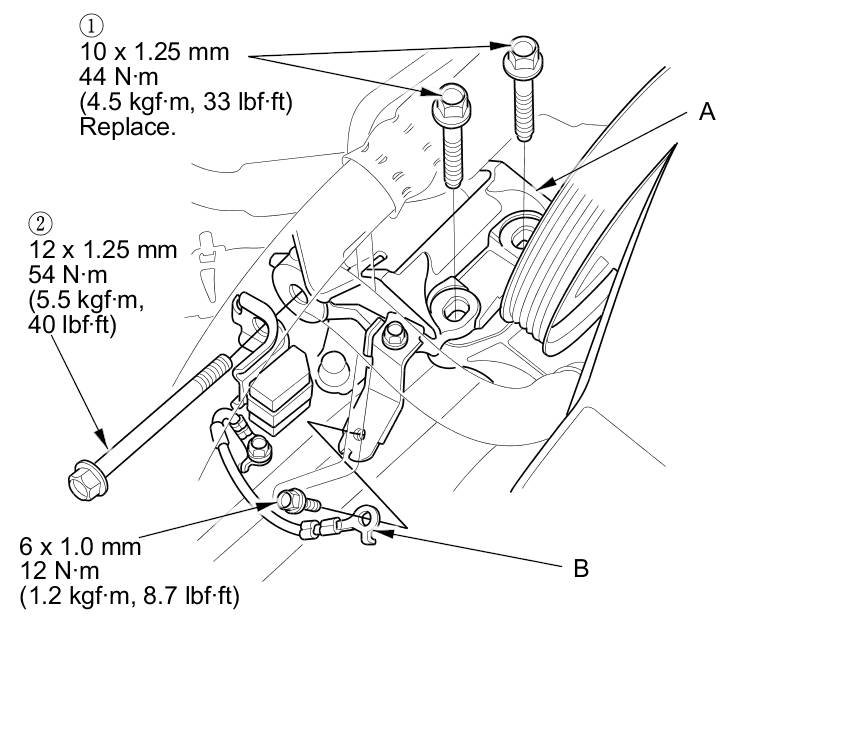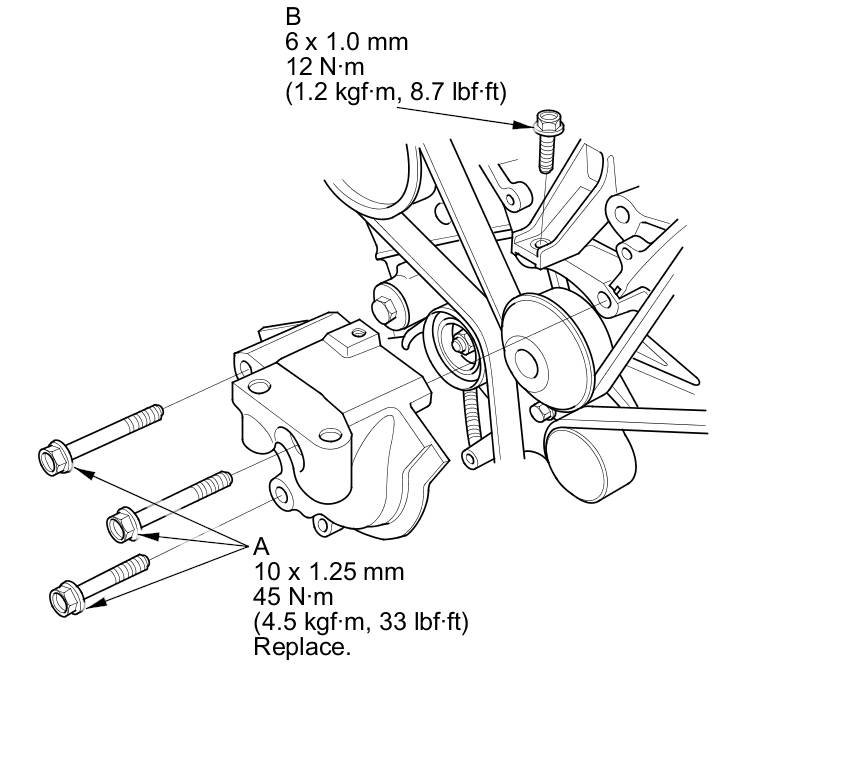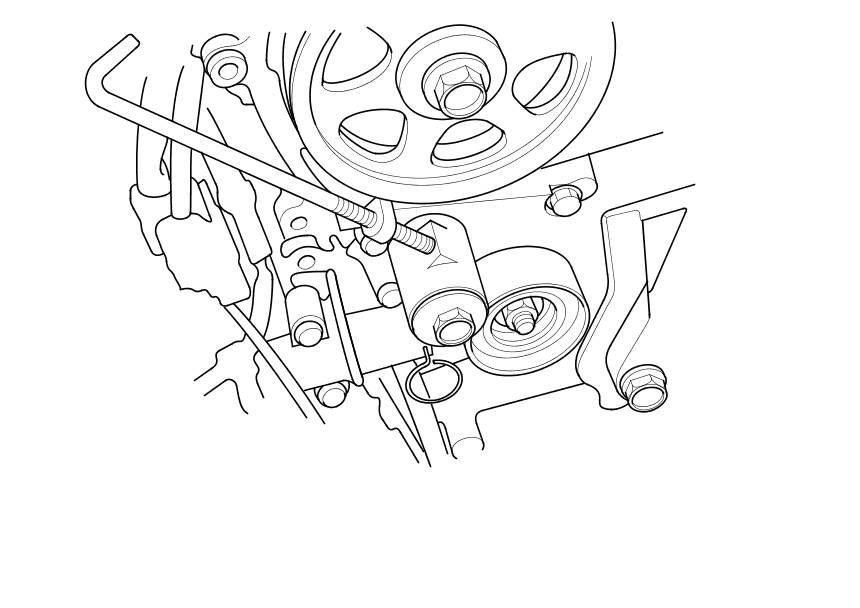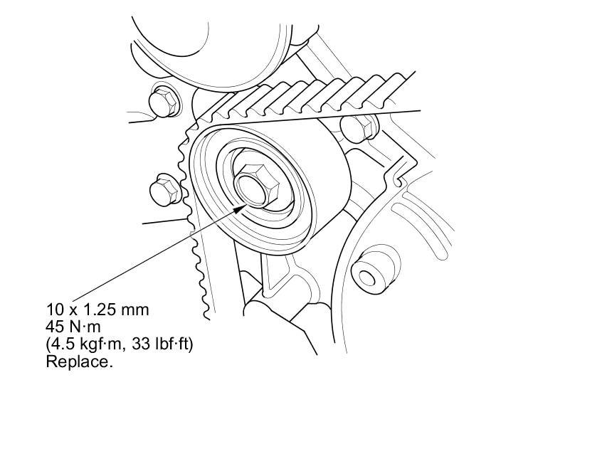 13. Install a new idler pulley bolt and tighten it to the specified torque.
