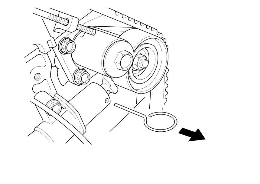 14. Remove the pin from the auto-tensioner.