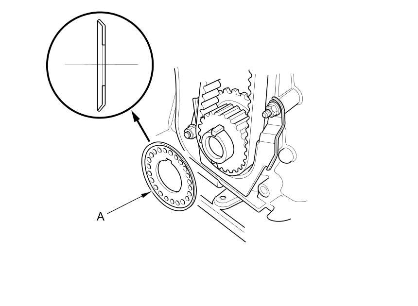 17. Install the timing belt guide plate (A) as shown.
