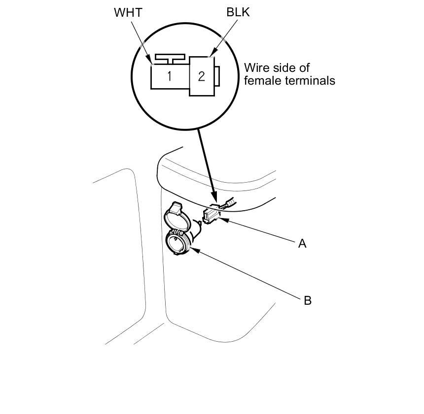 2. Disconnect the 2P connector (A) from the cargo area accessory power socket (B).