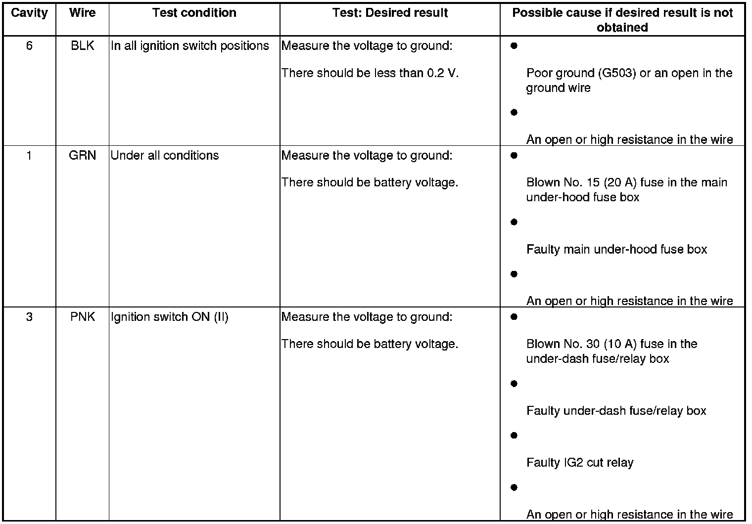 5. With the connector still disconnected, do the following input tests: