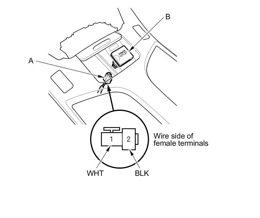 2. Disconnect the 2P connector (A) from the front accessory power socket (B).