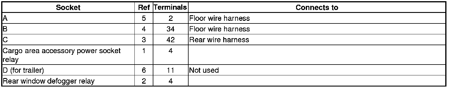 Fuse/Relay Box Connector Locations (Rear)