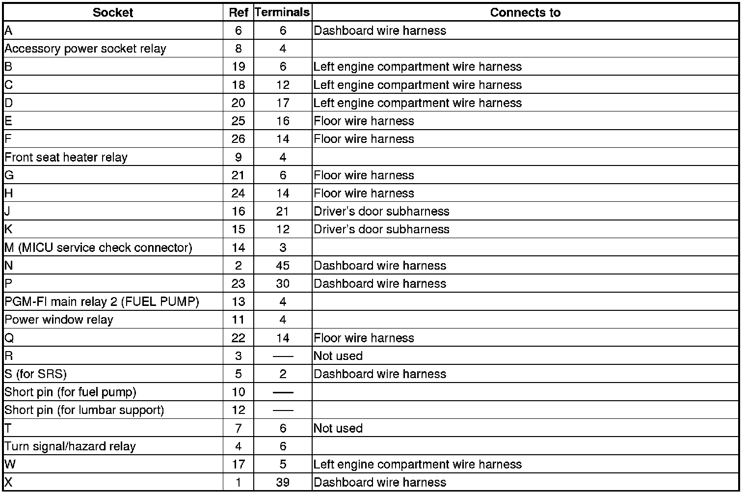 Fuse/Relay Box Connector Locations (Under-Dash)