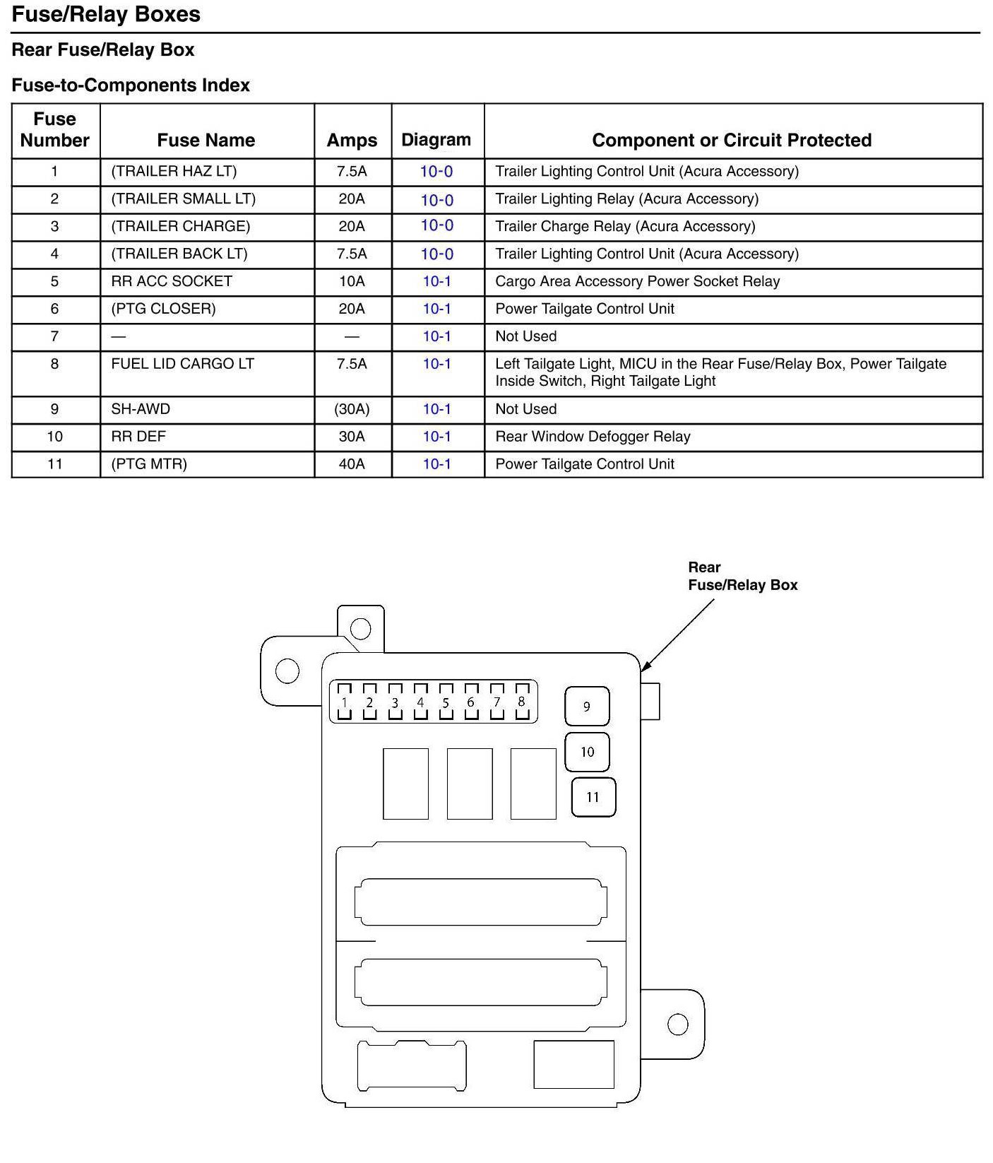 Rear Fuse/Relay Box - Fuse-to-Components Index