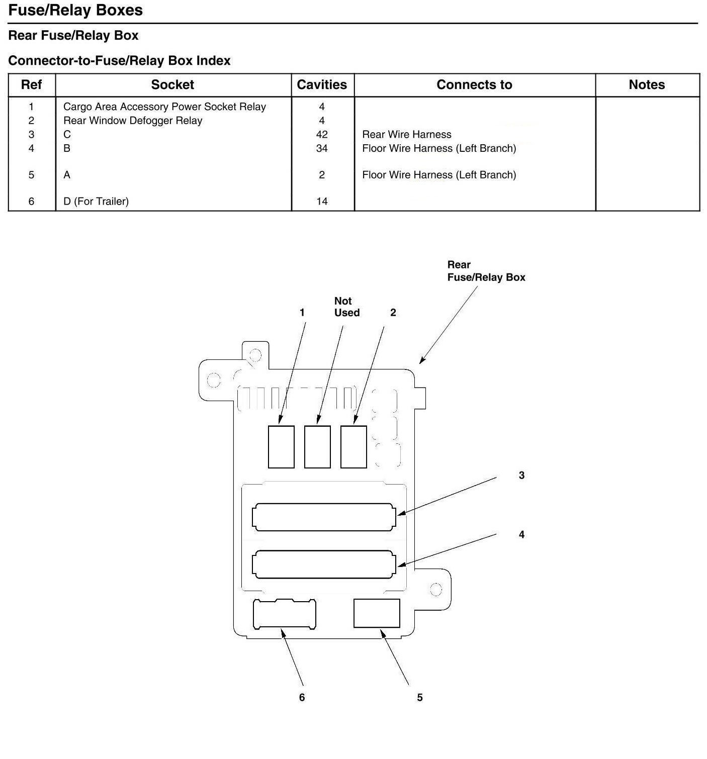 Rear Fuse/Relay Box - Connector-to-Fuse/Relay Box Index