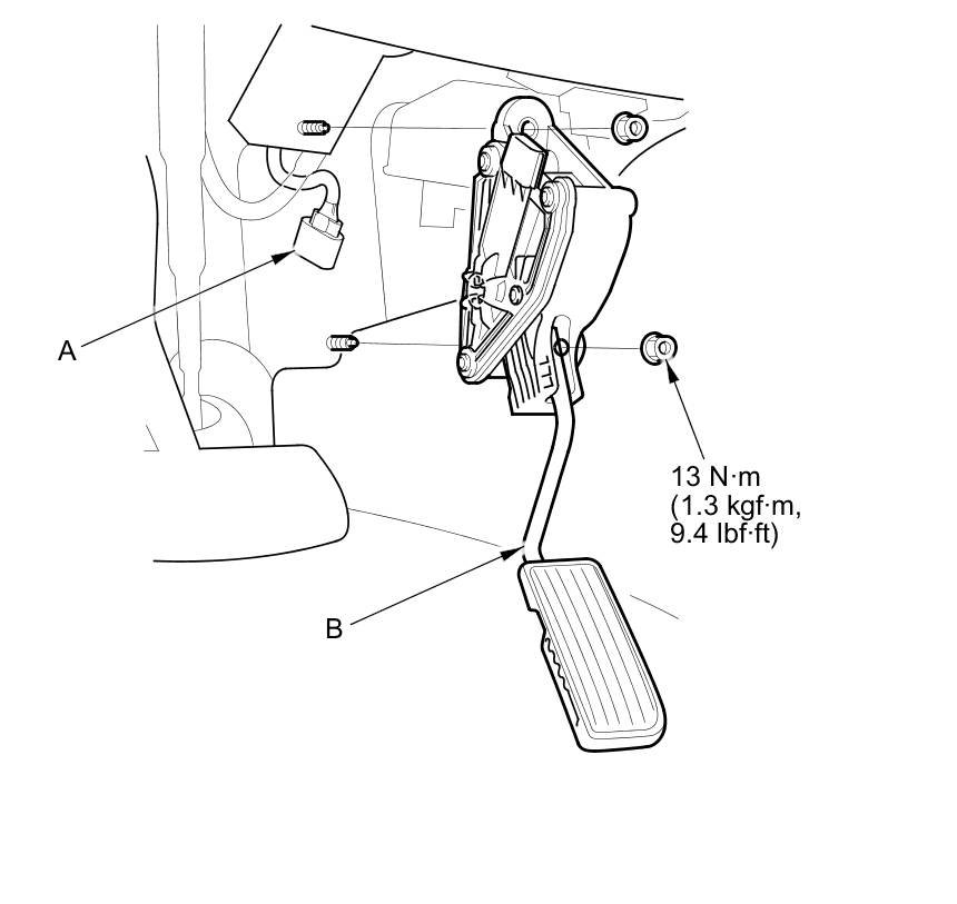 NOTE: The APP sensor is not available separately. Do not disassemble the accelerator pedal module.