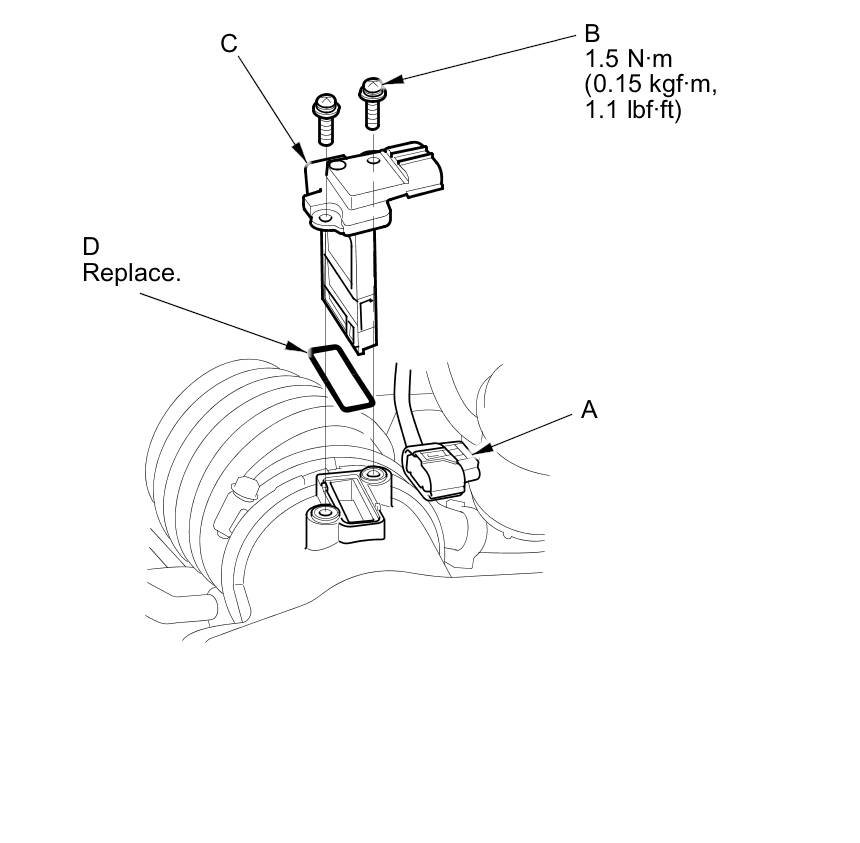 4. Install the parts in the reverse order of removal with a new O-ring (D).