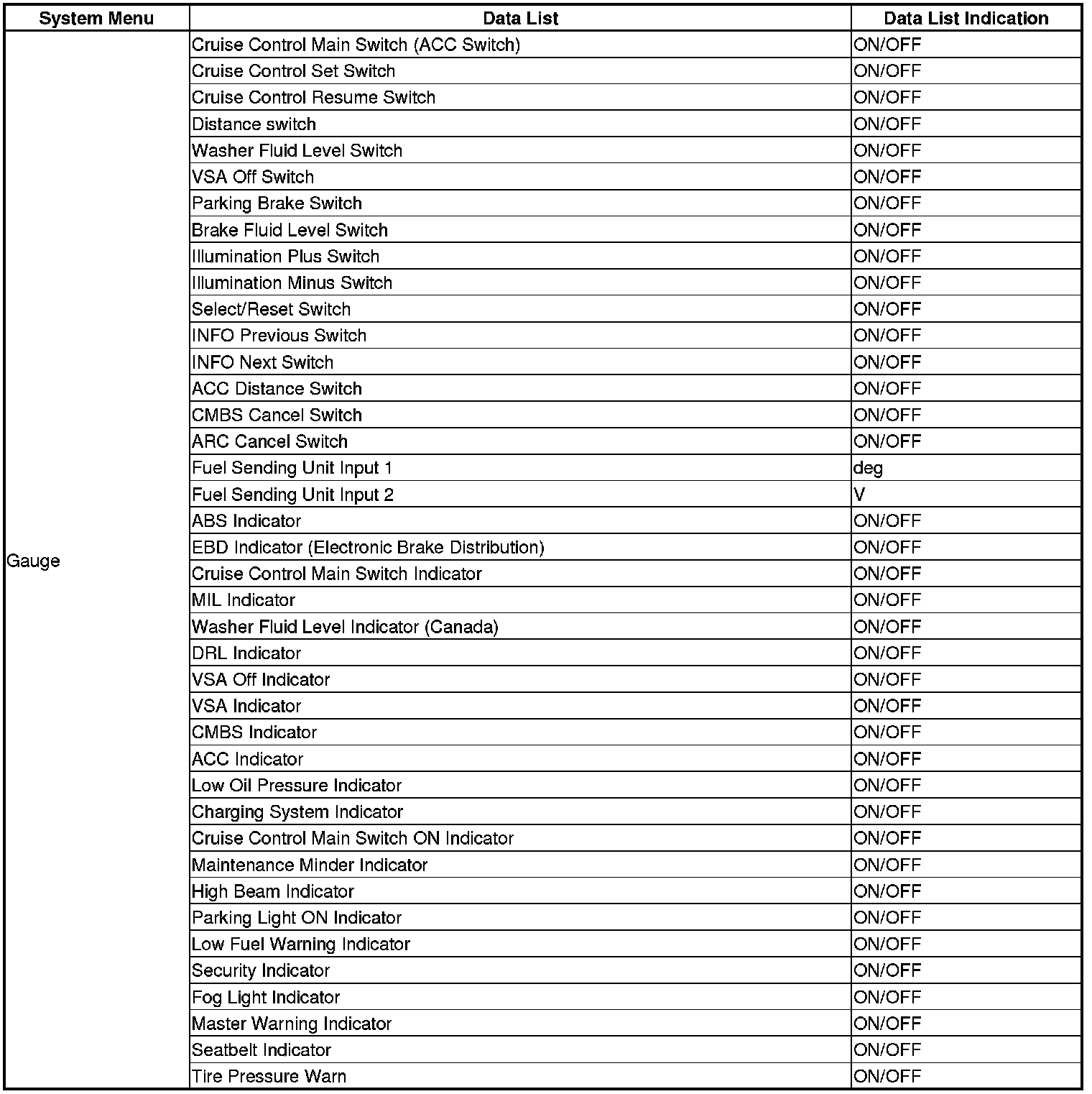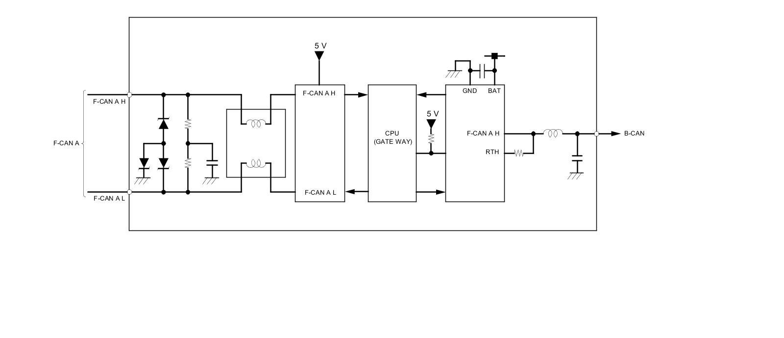 The body controller area network (B-CAN) and the fast controller area network (F-CAN) share information between multiple electronic control units (ECUs). B-CAN communication moves at a slower speed (33.33 kbps) for convenience related items and for other functions. F-CAN information moves at a faster speed (500 kbps) for "real time" functions such as fuel and emissions data. To allow both systems to share information, the gauge control module translates and relays the information from B-CAN to F-CAN A and from F-CAN A to B-CAN. This is called the Gateway function.
