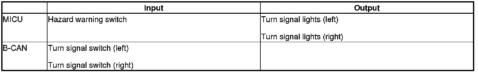 The MICU controls the turn signal/hazard warning lights based on inputs from each switch.