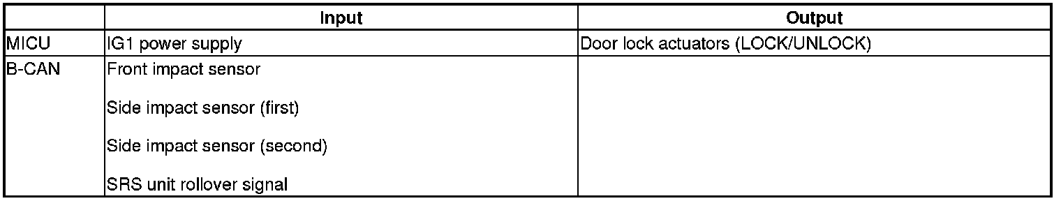 The MICU controls the door lock actuators based on inputs from SRS signals sent by B-CAN..