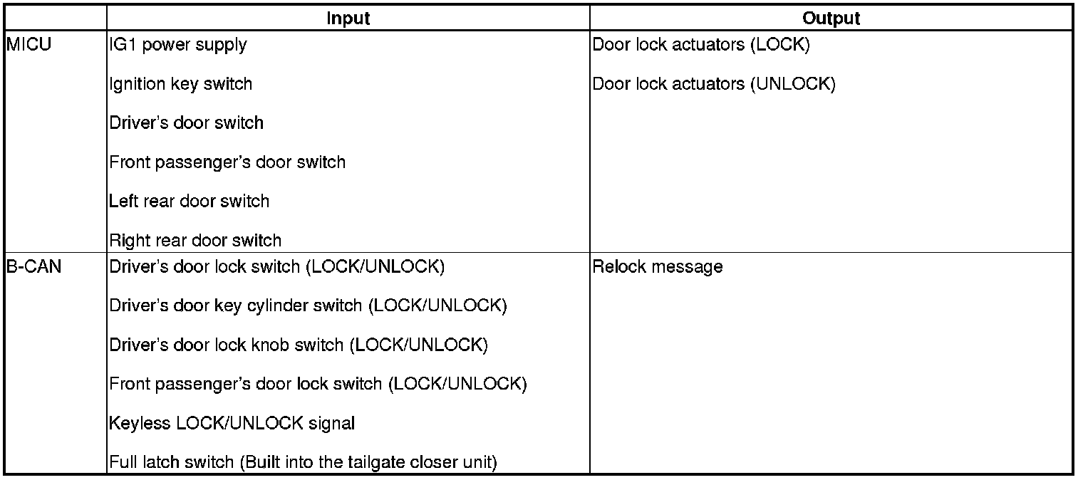 When any of the data from the B-CAN circuit cannot be received within a specified time, or an unusual combination of data is recognized, the MICU moves to the software fail-safe mode. The data that was not received is forced to a pre-programmed value.