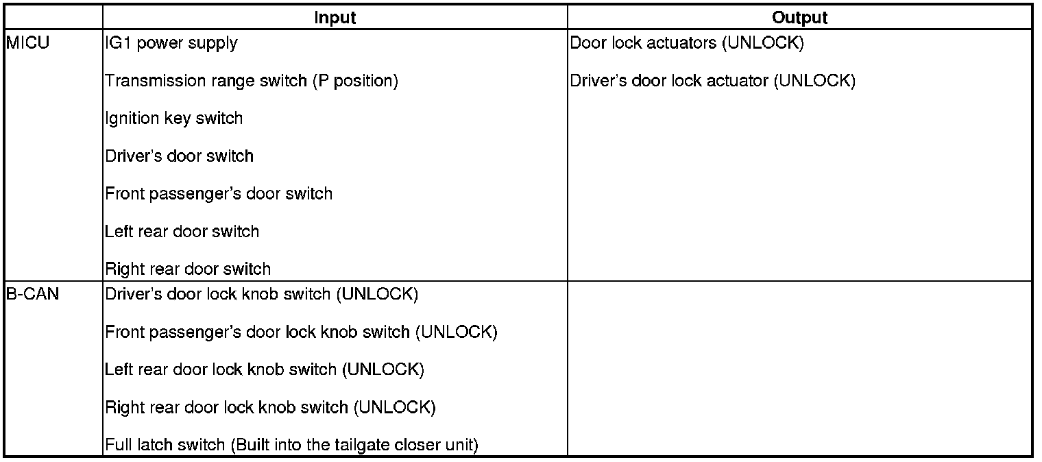 Auto Power Door Locks (UNLOCK operation)*