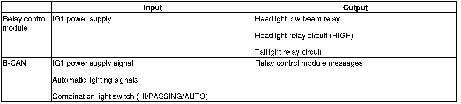 The relay control module controls the exterior lights based on inputs from the combination light switch signals.
