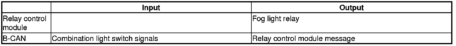 The relay control module controls the fog lights based on inputs from the combination light switch signals.