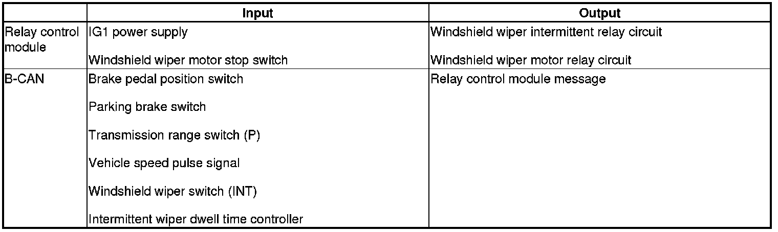 The relay control module controls the windshield wiper (vehicle speed sense) based on inputs from each switch.