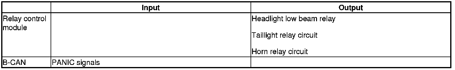 The relay control module controls the keyless PANIC function based on inputs from the PANIC signals.