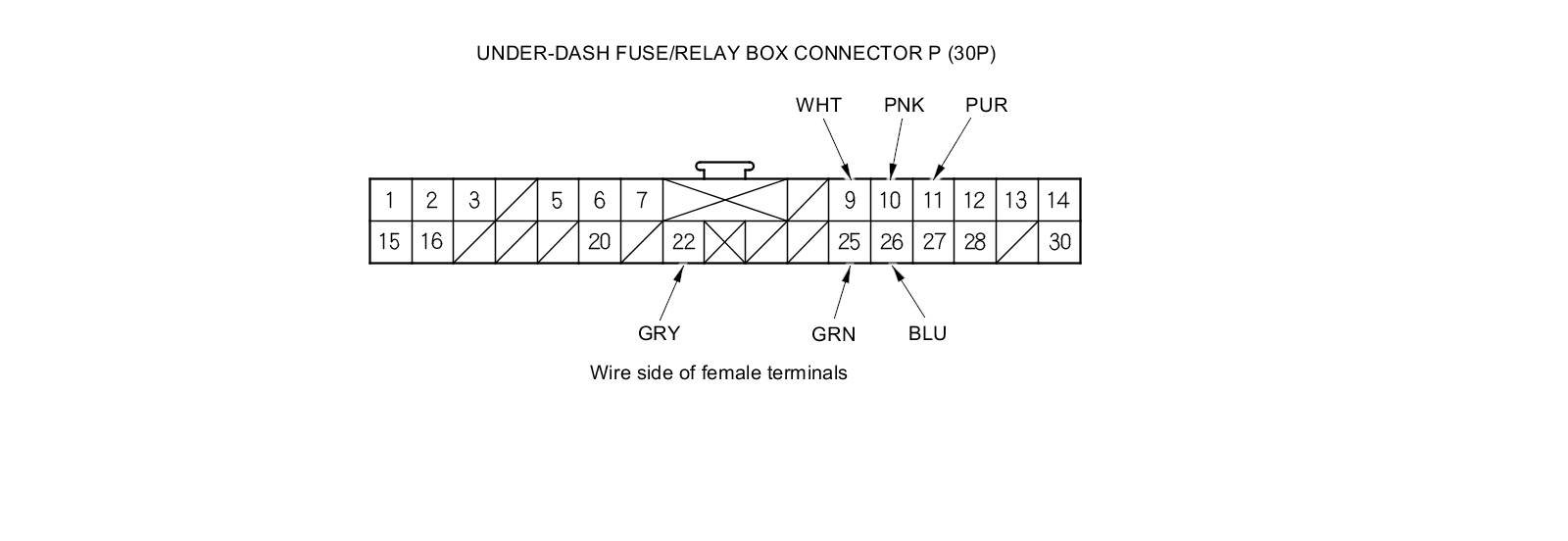3. Disconnect under-dash fuse/relay box connector P (30P).